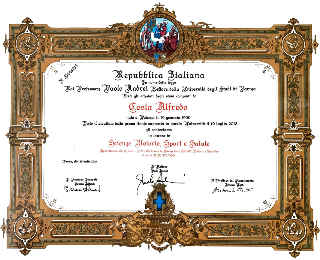 Scienze Motorie, Sport e Salute, conseguita presso l'Università degli Studi di Parma
